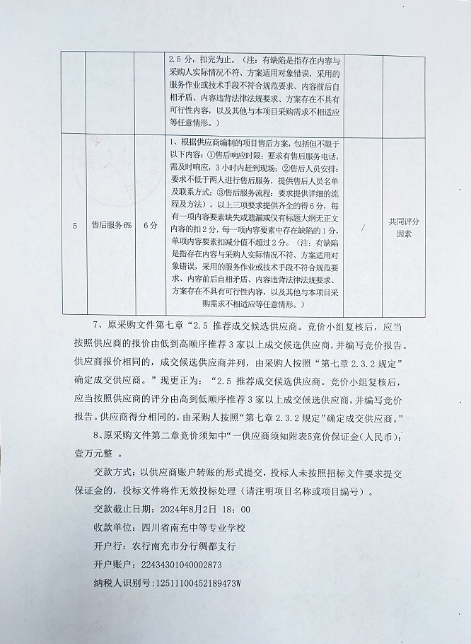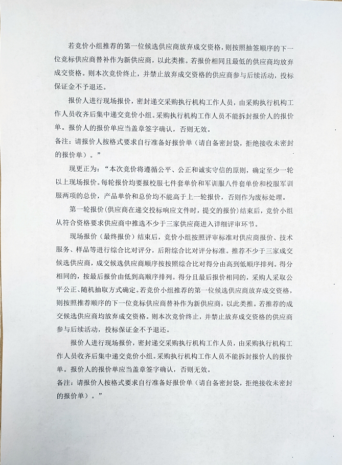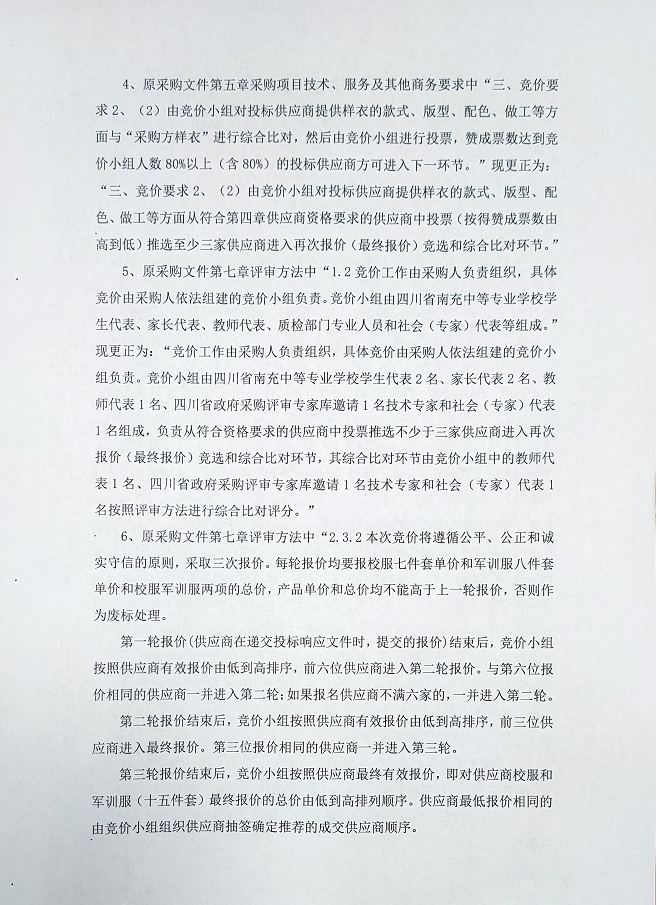 關(guān)于四川省南充中等專業(yè)學(xué)校校服和軍訓(xùn)服采購項目的更正說明