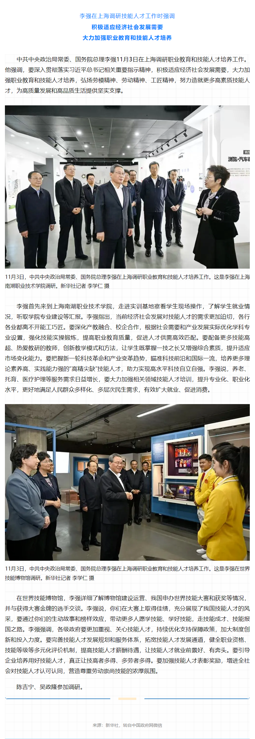 李強(qiáng):大力加強(qiáng)職業(yè)教育和技能人才培養(yǎng)