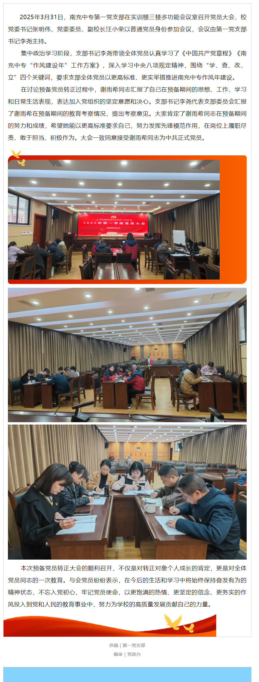 南充中專第一黨支部召開(kāi)預(yù)備黨員轉(zhuǎn)正大會(huì)
